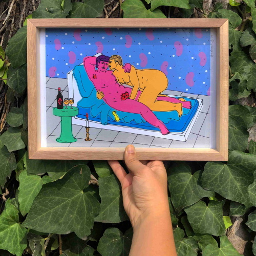 Print con marco box de madera kiri. Tamaño A4, listo para colgar.