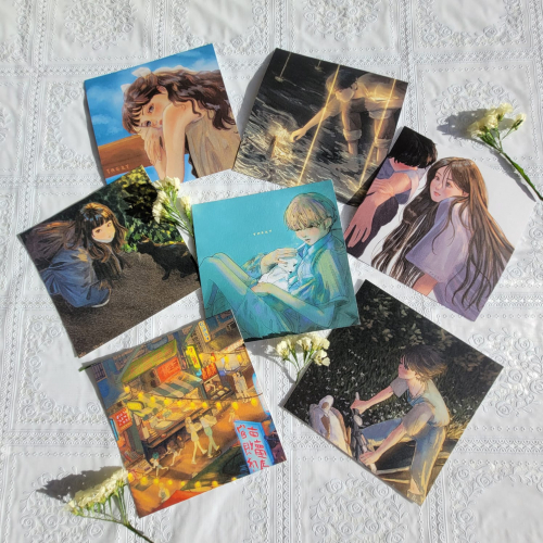 Varias ilustraciones cuadradas, impresas en papel texturado de 250-300gr