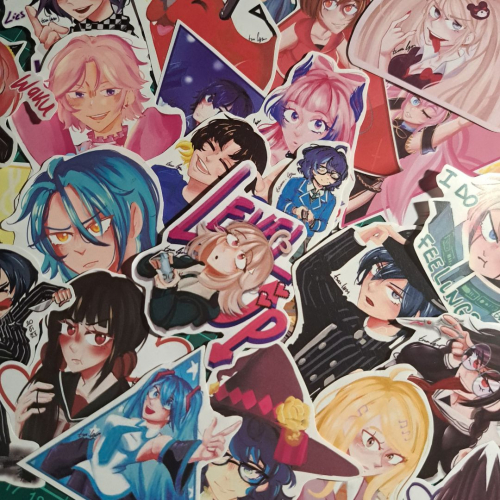 Stickers variados, mayoritariamente danganronpa genshin impact Idols (ensemble stars, i7 etc)