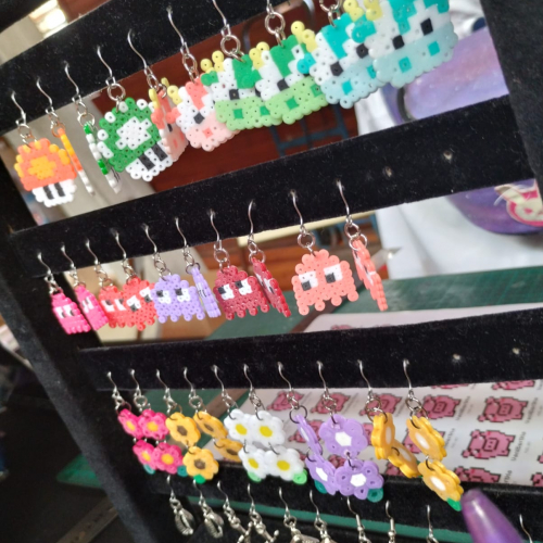 Aritos pixelados, hechos con hama beads mini y pasante de acero quirúrgico. Se hacen a pedido con el diseño que quieras