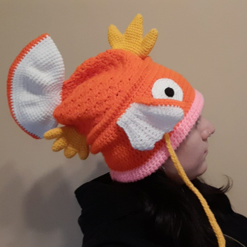 Gorro Magikarp tejido 100% a mano. Material sintético