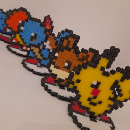 Pokémon con base de pokébola encastrable, hechos con hama beads midi. Se pueden pedir a elección.