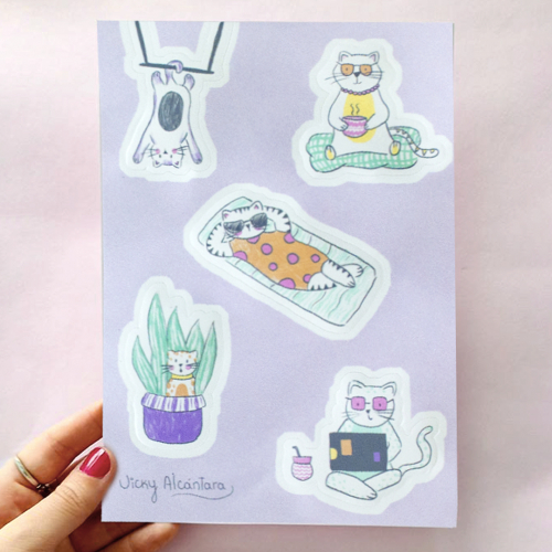 Plancha de stickers A6 en vinilo, con diseño de gatitos.