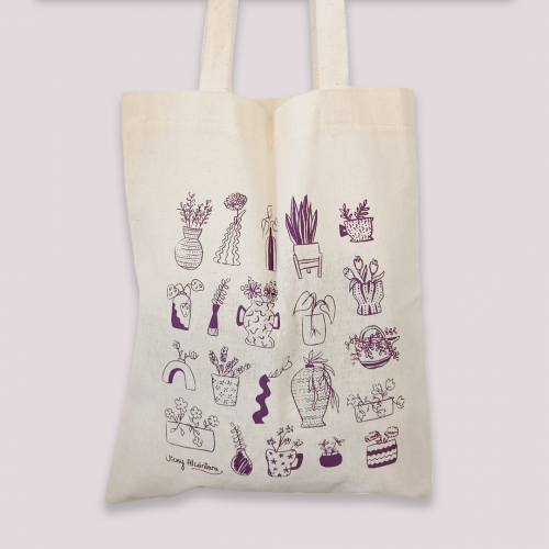 Tote bag de lienzo de algodón de 35x40 cm con estampado de floreritos en serigrafía