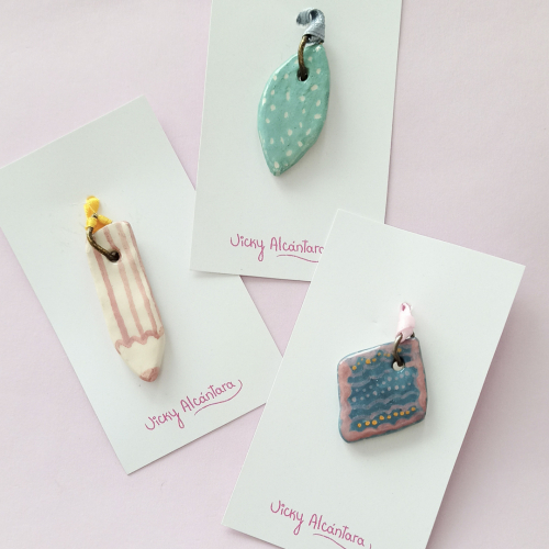 Dijes hechos en cerámica modelados de forma manual, diseños varios.