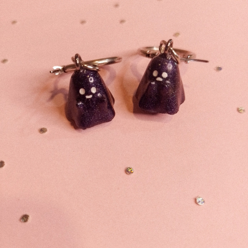 Aros de acero quirúrgico y dije de fantasma hecho con resina.